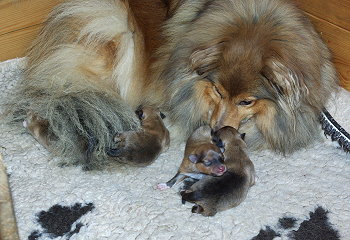 Am 25.03.2011 war es soweit - Ivett brachte völlig problemlos den zweiten A-Wurf vom Affinger Bach zur Welt! Wir freuen uns sehr über die drei Rüden und die eine Hündin. Ivett ist eine sehr gute Mama und kümmert sich rührend um die Kleinen. Wir freuen uns, dass sie sich inzwischen so gut bei uns eingelebt hat und nun Welpen bei uns aufzieht.